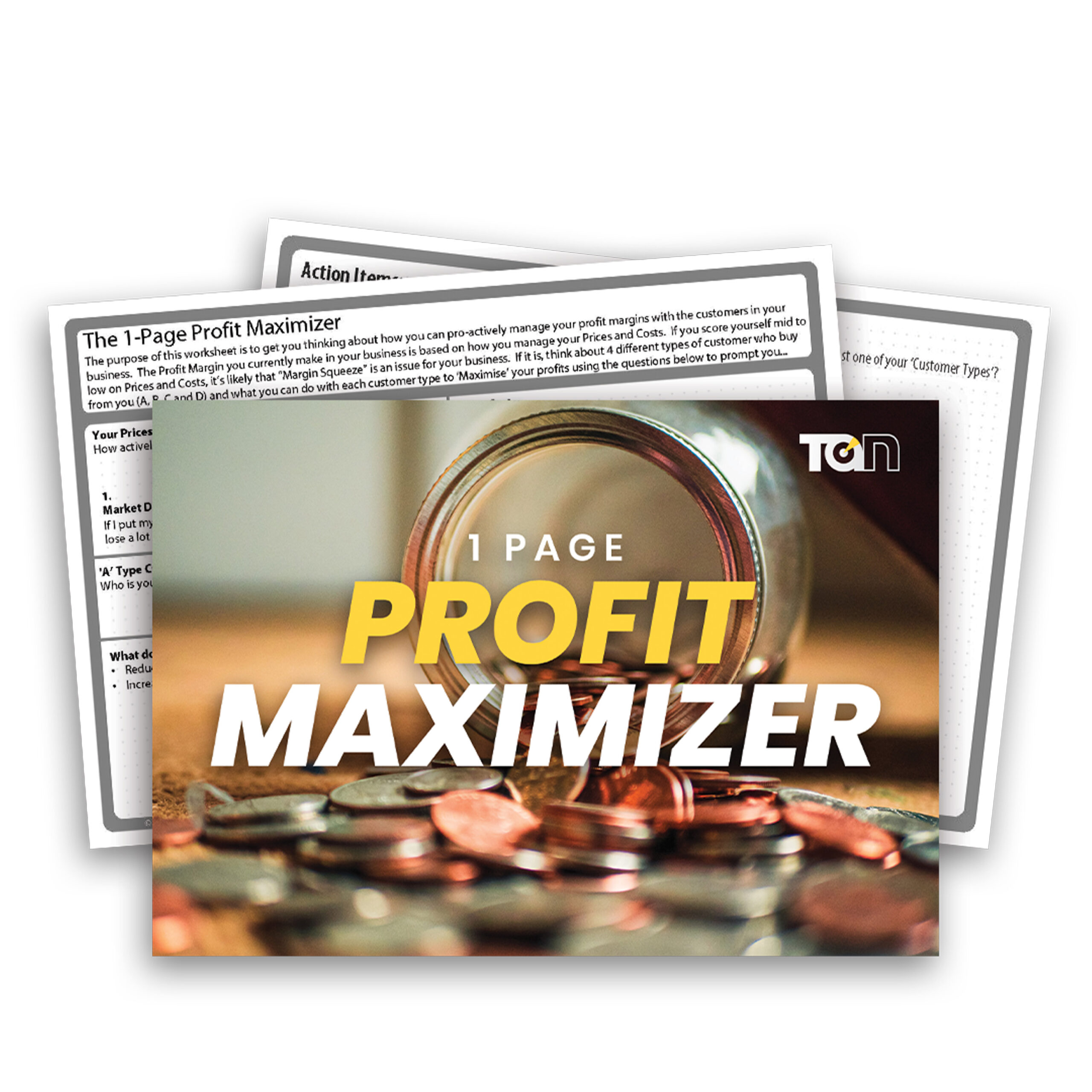 The 1 Page Profit MaximiserIncrease earnings without working more, track expenses for control, and retain customer loyalty regardless of pricing. The Profit Maximiser with show you how to...Get your customers to buy from your regardless of priceMonitor & control your costs so it always feels like you’re on top of itMake sure your business makes excellent money and is easier to runWhere Should We Send Your Copy? Name(Required) First Last Email(Required) Business NameThis field is hidden when viewing the formEmbed URL(Required)This field is hidden when viewing the formSRThis field is hidden when viewing the formCSThis field is hidden when viewing the formTSThis field is hidden when viewing the formPMThis field is hidden when viewing the formMSThis field is hidden when viewing the formBB Δ