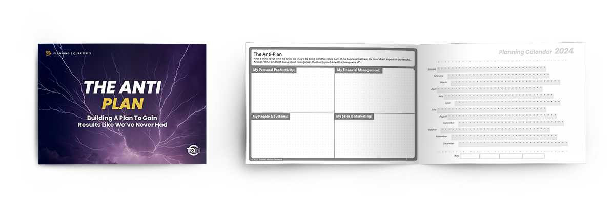 Clients reflect on the year and put together a plan to make the new year their best yet. They will set goals for their business for income, freedom (time away from their business) and the scale they want to achieve. In this planning session there’s a particular focus on the business owner and their personal performance to ensure they have a plan for the role they have in leading others. This process leads into the completion of the 1-Page Plan.